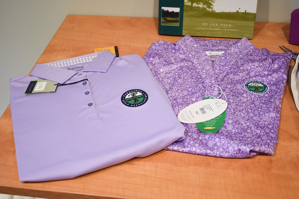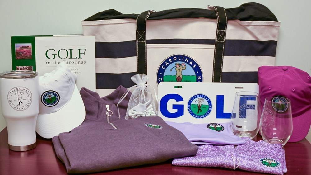Celebrate your love for Carolinas golf with this premium collection of CGA apparel and accessories. The winner will receive: * Two CGA Polos (Women’s size Large or X-Large available – one solid purple, one patterned purple) * CGA Pullover (Women's XXL) * Two CGA Hats (Small fit) * CGA Beach Bag * CGA Decorative License Plate * Golf in the Carolinas Book by Lee Pace * Two CGA Glass Wine Glasses * Bag with Tees, Ball Markers, and Ball Mark Repair Tools * Large White CGA Tumbler Shipping: Items can be picked up at the CGA offices in Southern Pines, N.C., or shipped to the continental United States only.